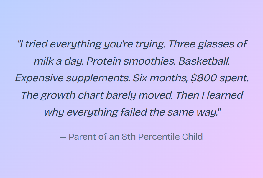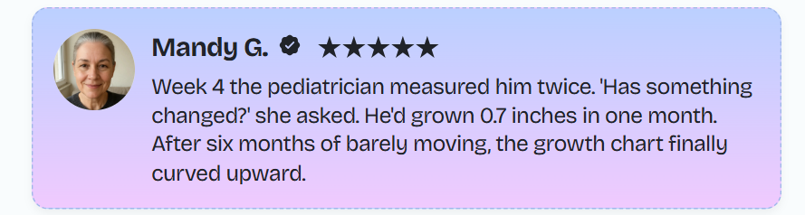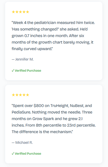 You can have all the building materials (calcium, protein, vitamins) but if the growth SIGNAL isn't firing, materials sit unused. IGF-1 is the 'foreman' telling growth plates to build. The same ingredients in Grow Spark have been clinically shown to increase IGF-1 levels in low percentile children.